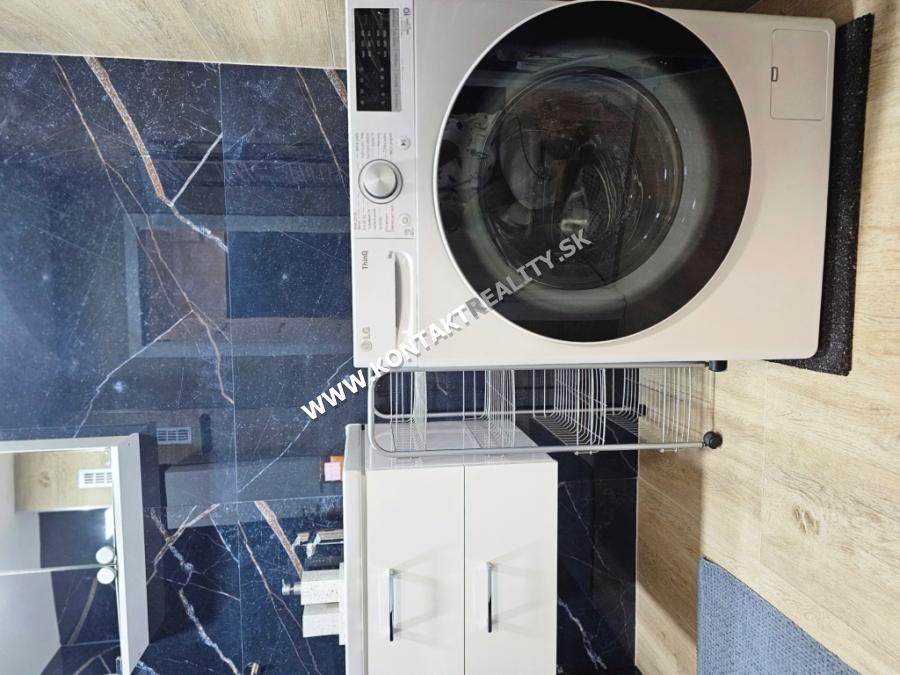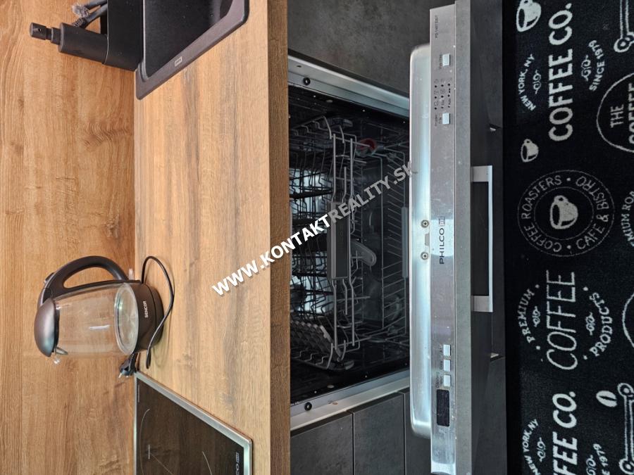 Kompletne zariadený so spotrebičmi a nábytkom ako je na fotkách (umývačka riadu, vstavaná chladnička s mrazničkou, mikrovlnná rúra, elektrická rúra, varná kanvica + kuchynský riad, práčka, vstavaná skriňa a manželská posteľ v spálni, jedálenský stôl, sedacia súprava, TV).