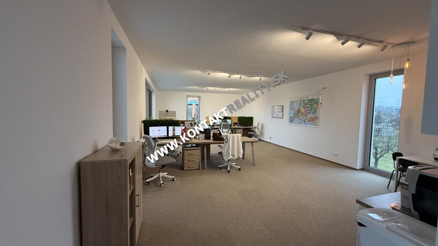 Jedná sa o celé jedno poschodie o výmere 180 m2 pozostávajúce z troch samostatných miestnosti a jednej veľkej konferenčnej miestnosti spojenej s menším kuchynským kútom.