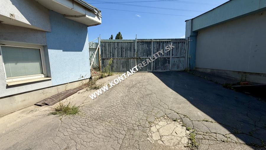 Uzavretý objekt s dvoma bránami prístupný aj nákladným autám, ktorý má dvor a nakladaciu rampu k hale 840 m2.